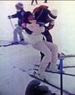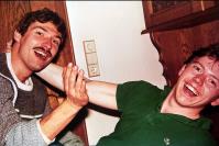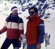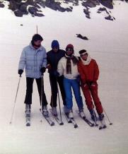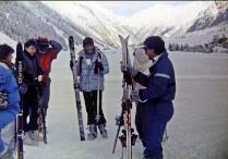 Für Bimbl, Krücke, Volker, Claudia, Sylvia, Biggi, Bernd und Tommy war eigentlich Skifahren am Hochzeiger angesagt. Aber akuter Schneemangel zwang uns, täglich 25 km zum Pitztaler Gletscher zu fahren. So erlebten wir in 3300 m einen wundervollen Panoramablick über die Alpen. Und Obstler war immer dabei. Wir wohnten in Wald, einem Ortsteil von Arzl. Und Zimmer Nr. 6 war das Party-Zimmer! Eine Legende war geboren. |