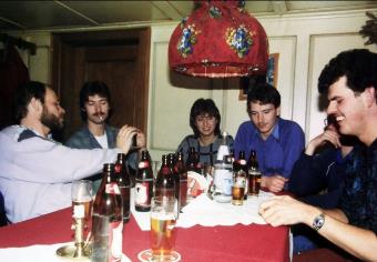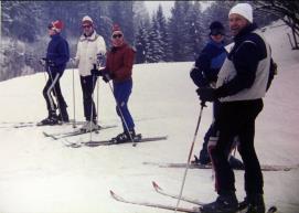 Nachdem die Niederungen des Fachlehrgangs überstanden waren ging eine ausgewählte Crew nach Österreich zum Skifahren. Wir besuchten drei kleine, aber gemütliche Skigebiete rings um Reuthe in Vorarlberg: Bezau, Bizau und Mellau. Schöne Abfahrten, gemütliche Hütten und ein toller Ausblich prägten die drei Skigebiete. Und das Wetter spielte auch mit. Die Abende in unserer Pension verbrachten wir vorzugsweise mit Mäxle und hatten viel Spaß dabei. |