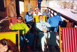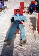 Nach vielen Tagen Trainings wagten wir die Sella Ronda. Start war um 9.00 Uhr bei Belvedere, weiter zu Lupo Bianco, Col Rodella bei Campitello, Sellajoch, Wolkenstein, St. Christina, vorbei am Langkofel, Grödnerjoch, Colfosco, Corvara. Inzwischen wurden die Wartezeiten an den Liften immer länger. Es folgten noch der Passo Campolongo und Arabba bevor wir um 17.00 Uhr wieder am Belvedere eintrafen. Geschafft: Einmal rund um die Sella Gruppe! Das Wetter war uns nicht immer hold. Aber auch im Nebel fuhren wir die steilsten Hänge hinab. Zum Abschluss gönnten wir uns noch ein Sonnenbad auf dem Sass Pordoi (2950 m) in teuren Liegestühlen. Ciao Canazei, Ciao Bella Italia