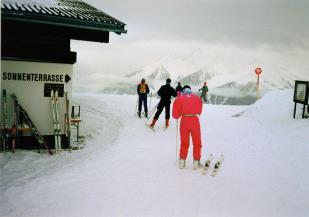 Ute, Axel, Krücke und Tommy waren die Skifahrer des Urlaubs 1993. Conny und Robin, noch ganz klein, machten dieses Jahr eine Ski-Pause. |