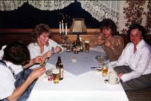 Die abendliche Hauptbeschäftigung im Hotel war Rommé spielen. Dazu gab es Bier und Wodka Feige. Eines frühen Abends kamen wir aus der Sauna ins Restaurant und alles war dunkel! An diesem Abend mussten wir hungrig ins Bett, denn in ganz Fliess gab es kein weiteres Restaurant. Ein schönes Erlebnis war der Abstecher nach Serfaus zum Skifahren. Am Ende des Urlaubs fuhren wir zusammen über St. Anton zum Bodensee. Dort hiess es Abschied nehmen von den Pfälzern. Tschüss, Euer |