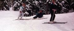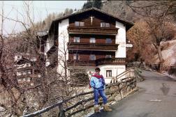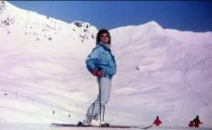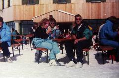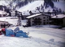 Claudi und Tommy machten sich im März 1987 auf nach Fliess in Tirol. Unser Hotel Fliesserhof verfügte über Swimming Pool und Sauna. Dennoch war der erste Eindruck ernüchternd: wenige Gäste, wenig Schnee, nix los! Dann lernten wir die Pfälzer Elke und Bernd kennen. Zusammen eroberten wir zunächst die Skiregion Venet. Dort konnte ich auch meinen neuen Overall testen. |