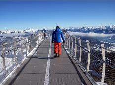 Der Skibus brachte uns an Tag 1 ins Skigebiet Schmitten. Wenige Wolken und etwas Wind waren auszuhalten. Die Folgetage bescherte uns das Gletscher-Skigebiet am Kitzsteinhorn optimale Schneeverhältnisse und Sonne satt. Vom Maiskogel gings mit der 3K K-onnection zum Gletscher. Mit dem Gletschershuttle erreichten wir Top of Salzburg (3029m), eine Panorama-Plattform mit grandiosem Ausblick auf die Gipfelwelt. |