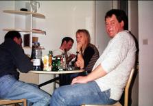 Zum Jahreswechsel 1995/1996 machten sich 44 Ski-begeisterte Teilnehmer mit der Turngemeinschaft Mannheim auf den Weg nach La Tania ins Skigebiet Les Trois Vallées in Frankreich. Bereits am zweiten Abend hieß es Prost Neujahr; das Jahr 1996 wurde feucht-fröhlich begrüßt. Es folgten weitere Feiern, eine Glühweinparty und mehrere Geburtstagsfeiern. Tequila war angesagt. Den krönenden Abschluss bildete Volkers 33. Geburtstag am Ende unseres Urlaubs nach dem Motto: letzter Abend, letzte Feier. Dort ging die Party nochmals richtig ab. |
