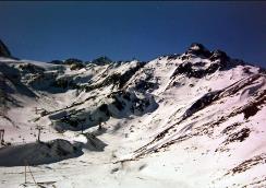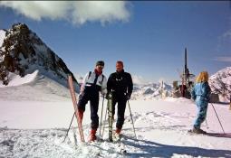 Das Duo Axel und Thomas wollte 1990 den Stubaier Gletscher professionell testen. Daher fuhren wir ins Stubaital und wohnten etwas beengt im Haus Kranerhof in Neustift. Ein Fuchs stand Wache vor unserer Zimmertür. Wenn der Morgen graute machten wir uns auf den 18km-Weg zum Stubaier Gletscher. Wir parkten an der Talstation der Gletscherbahn in Mutterberg auf 1750m Höhe. Wegen Schneemangels war die Talabfahrt "Wilde Gruben" leider nicht möglich. |