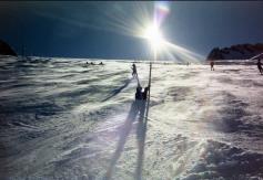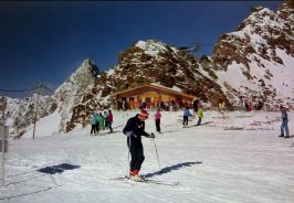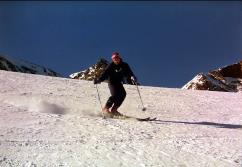 Ab der Mittelstation Fernau in 2300m Höhe war dann Skifahren auf dem Gletscher angesagt. Ein tolles Panorama auf die Tiroler Alpen bot sich vom Panoramarestaurant Eisgrat in 2900m. Die Sonne knallte auf uns herab, während Axel Skifahren in Perfektion zeigte. Im Restaurant Gamsgarten am Eissee in 2620m gönnten wir uns auch einmal Liegestühle. Dann stürmten wir ganz nach oben auf die Schaufelspitze in 3333m. Eine Rast in der Jausenhütte Jochdohle, mit 3200m die höchstgelegene Einkehrstation Österreichs, durfte nicht fehlen. Bei Glühwein und Banane kamen wir wieder zu Kräften. Der Blick hier oben reicht bis in die Dolomiten und die Ötztaler 3000er-Region. Am Grat zurück zum Hauptgletscher war es äußerst stürmisch. Eines Nachts fiel dann auch Neuschnee, der uns einen letzten Schwung in unberührter Natur ermöglichte. Euer |