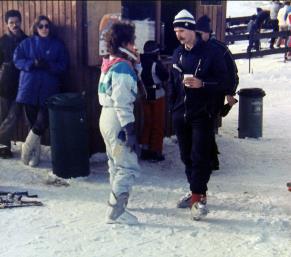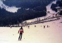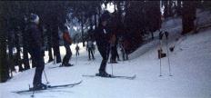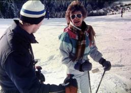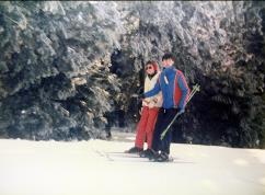 In den 80er und 90er Jahren waren wir in unterschiedlichster Besetzung regelmäßig im Ski-Naherholungsgebiet am Ruhestein im Nordschwarzwald. Die Aufnahmen stammen aus 1985 und zeigen Susi, Mickey, Claudi, Axel und Tommy sowie Birgit mit Freundin aus Baiersbronn. Für die Anfahrt mussten oft auch Schneeketten aufgezogen werden. Vom Parkplatz ging es dann direkt auf die Piste und ins Skivergnügen. |