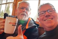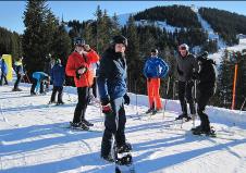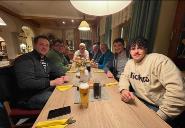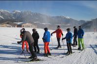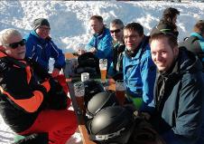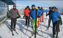 Während Robin auf den Hütten vergeblich nach Kaiserschmarrn suchte, genoss Michael diesen bei der Oma in der Pizzeria. Chefkoch Jürgen erbarmte sich und servierte Robin abends eine ganze Pfanne voll. Nach dem guten Abendessen in umliegenden Restaurants verbrachten wir die kurzen Abende im Aufenthalts-Raum. Den Sieg im Vorrundenspiel der Handball-EM gegen Belarus sahen wir alle zusammen in unserem Vorzimmer im großen TV. |