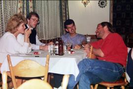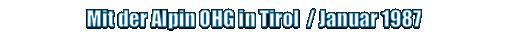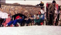Der beklagenswerte Rest der 1986 in Bezau gegründeten "Alpin und Loiper OHG" begab sich nach Tirol zum Ski- und Après-Ski-Genuss. Die Mannschaft in Serfaus bestand aus Werner, Theo, Lauscher und Tommy. Werner war bereits Stammgast in unserer Pension und kannte die Chefin, den Oberkellner, den Koch und die Monerl aus Wien bestens. Dies brachte uns überall in Serfaus gewisse Insider-Vorteile. |