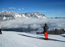 Weil es so schön war, sind wir zurückgekommen in die Skiwelt Wilder Kaiser in den Kitzbüheler Alpen. Dieses Mal haben wir den Ort Söll und damit die andere Seite des großen Tiroler Skigebiets gewählt. Wir waren zu Gast bei Familie Eisenmann im Alpengasthof Hotel Gruberhof in 1200 Meter Höhe. Das Essen war gut, die Zimmer gemütlich und abends haben wir uns bei Skat und Fußballschauen wunderbar unterhalten. Der Hotel-eigene Kleinbus, gefahren vom Chef oder der Tochter, brachte uns morgens ins Skigebiet und abends wieder zurück ins Hotel.