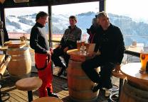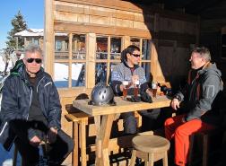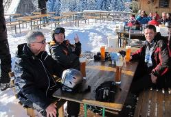 Neben dem 2013er-Team mit Michael, Volker und Tommy war ein weiterer Michael an Bord. Damit war Wallstadt mit 75% so stark vertreten wie noch nie! Eigentlich war die Truppe recht harmonisch, auch Ski-technisch. Nur Volkers orangene Hosen stachen heraus. Nach einem denkwürdigen Sturz denke nun auch ich über einen Skihelm nach. |