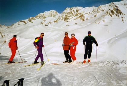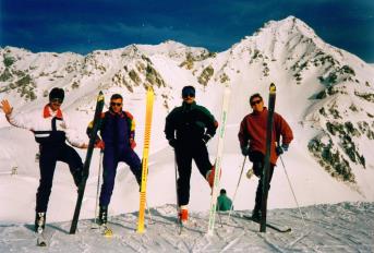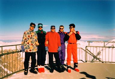Einmal am Arlberg die Pisten und die Tiefschneehänge genießen. Axel, Volker, Conny, Krücke (Michael), Eich (Michael), Susi und Tommy machten sich 1995 auf den Weg, diesen Traum zu verwirklichen. Und wir wurden mit bestem Pulverschnee und strahlendem Sonnenschein belohnt. Susi war schwanger und musste daher zuschauen, während wir die rasanten Abfahrten bestens auskosteten. |